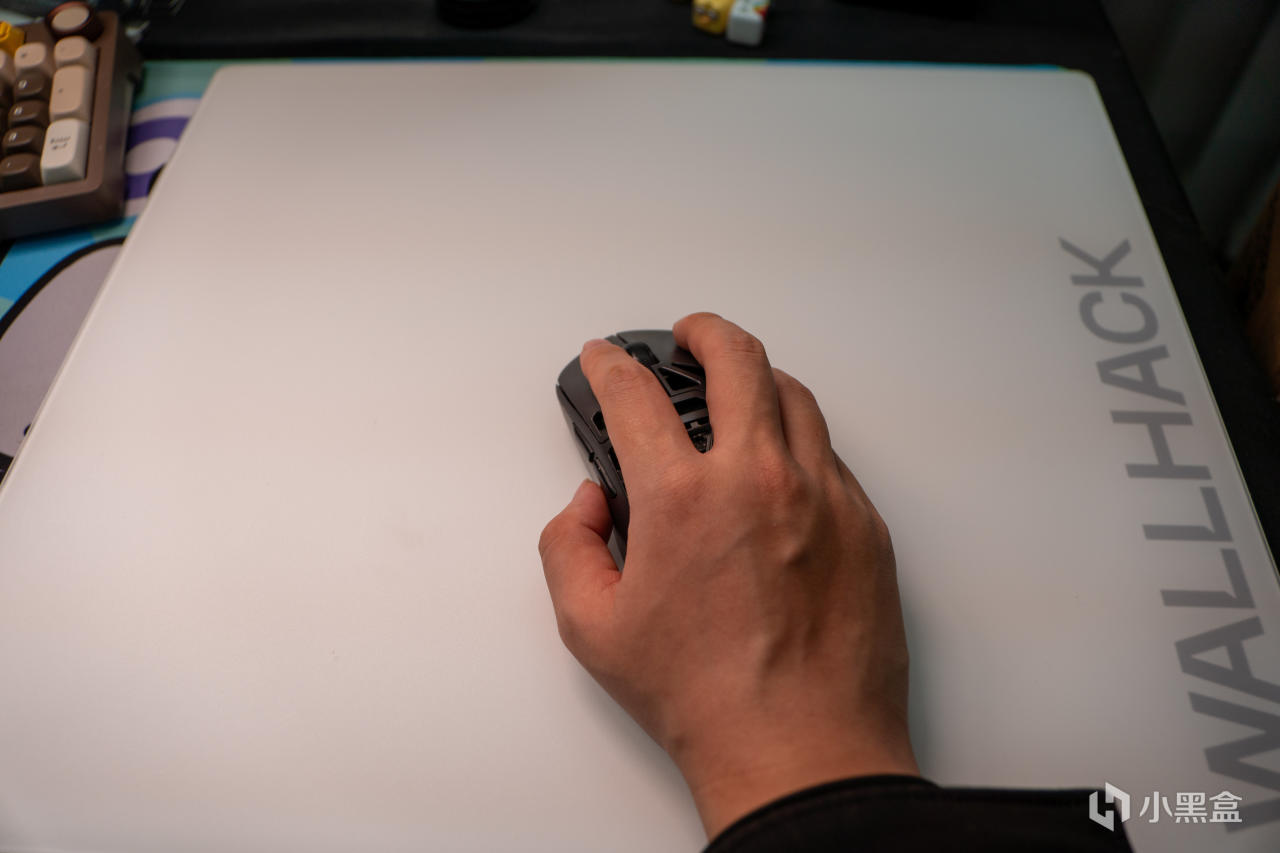 另一方面,涂层的微纹理又不会像是玻璃表面那么的滑,细腻的同时还会提供适度的 “阻尼感”,避免鼠标一下子飞出去,不过和布垫比还是会更加光滑的,尤其适合低 DPI 玩家,拉枪、定位时更可控顺手,丝滑的同时也不会拉过。